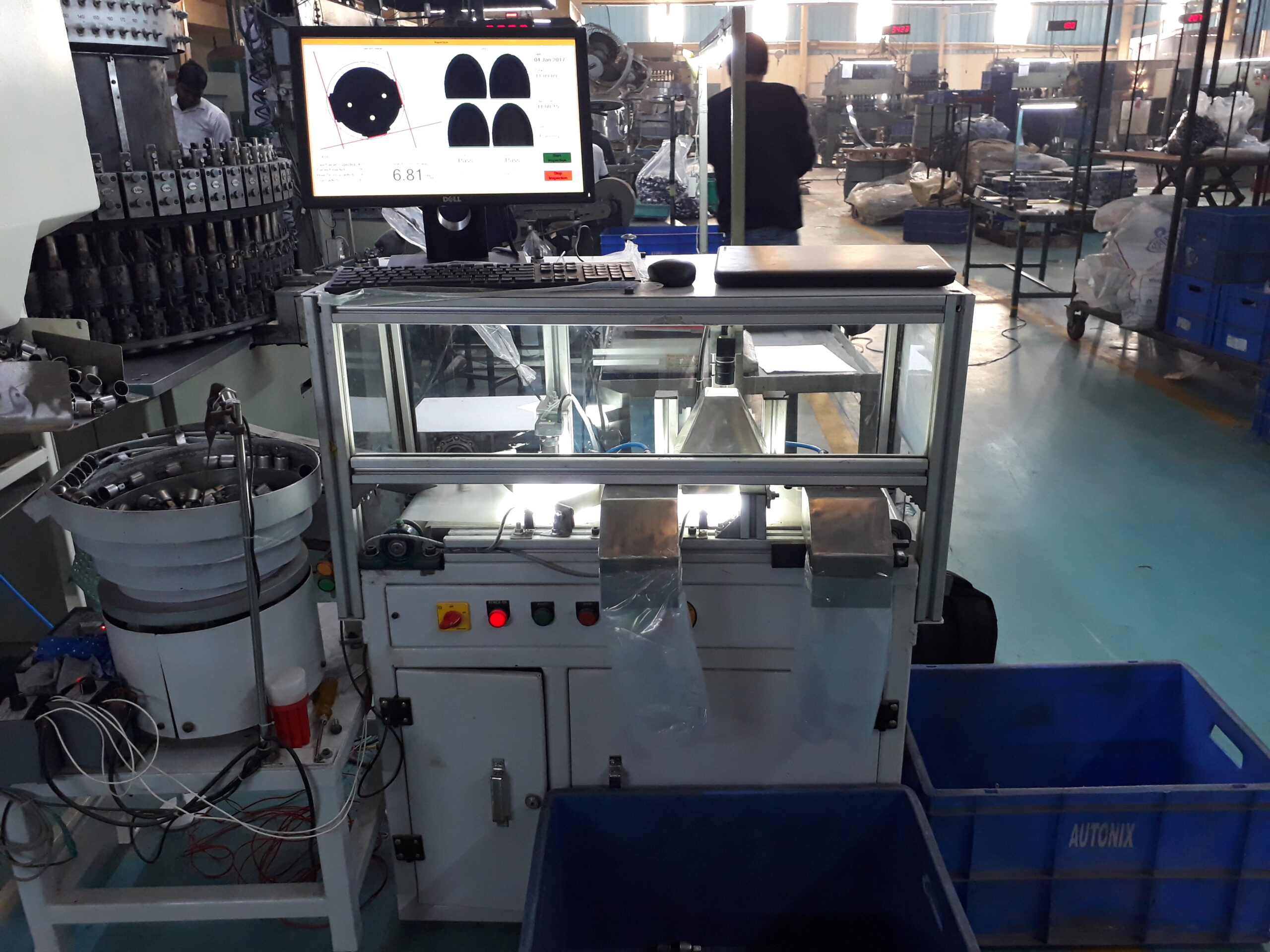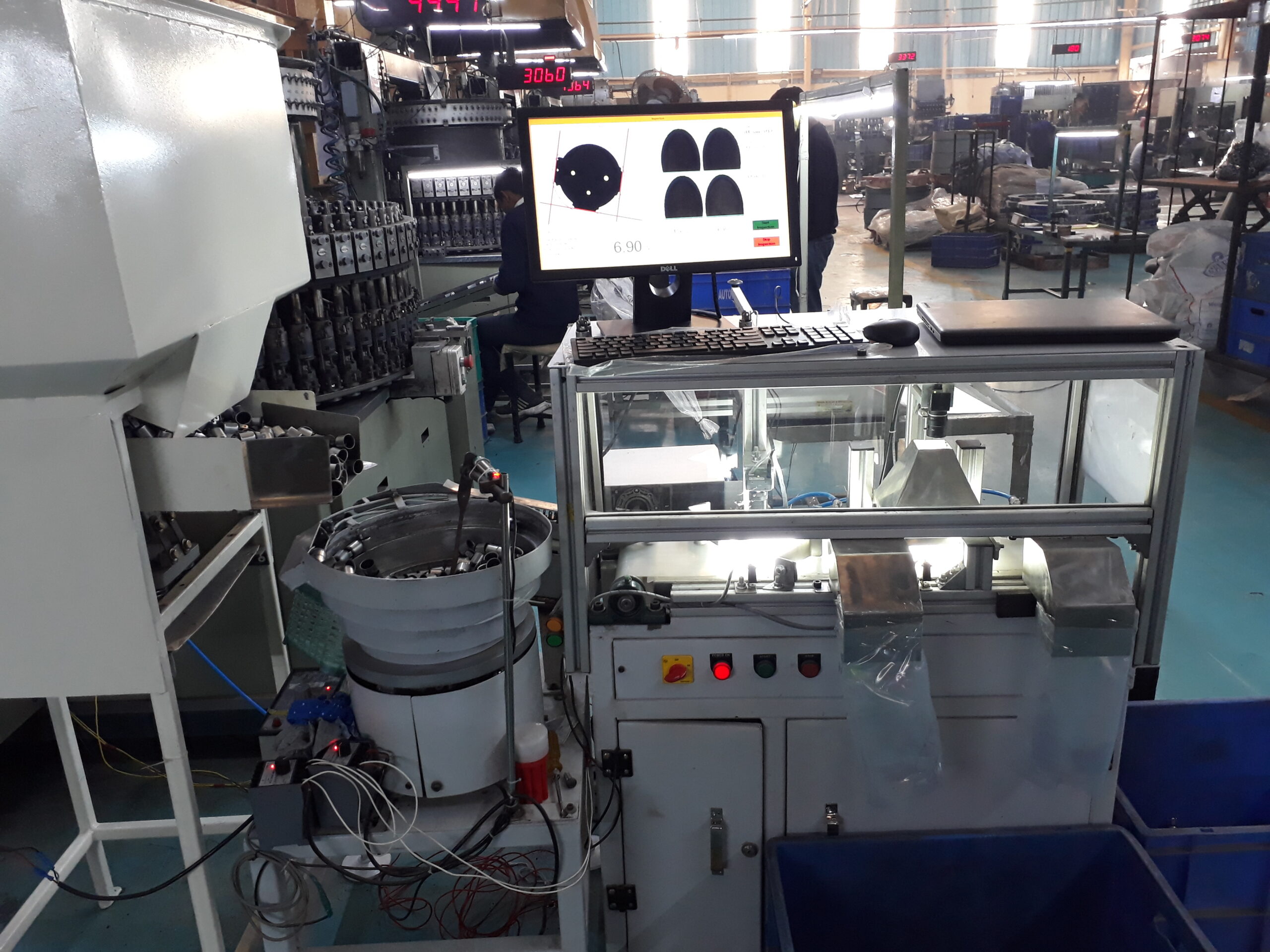 This high speed inspection system is a robust way to check for shell cracks, missing terminals, and hole close in G16 caps of halogen bulb capsules.